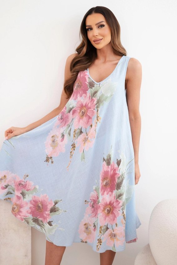 Niebieska sukienka bawełniana oversize z kwiatowym nadrukiem – lekkość i komfort w stylu Resort