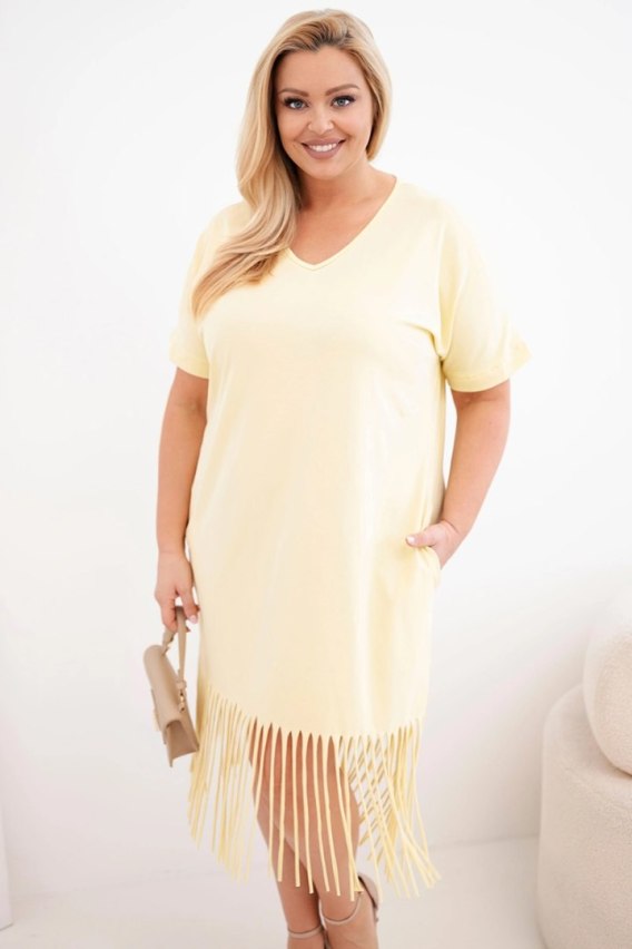 Sukienka damska bawełniana z dekoltem V i frędzlami Plus Size żółta