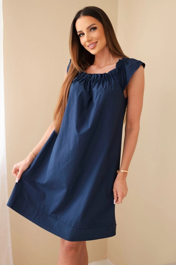Granatowa sukienka bawełniana z marszczonym dekoltem i falbanką – dlaczego to kwintesencja letniego szyku?