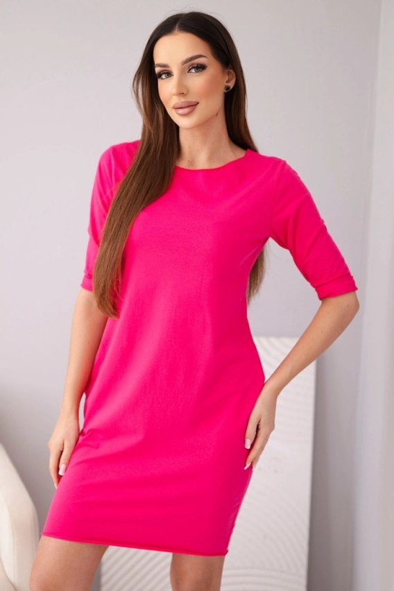 Sukienka damska bawełniana z rękawem 3/4 i kieszeniami fuksja