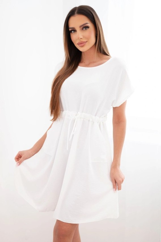 Sukienka damska z krótkim rękawem i wiązaniem w pasie biała