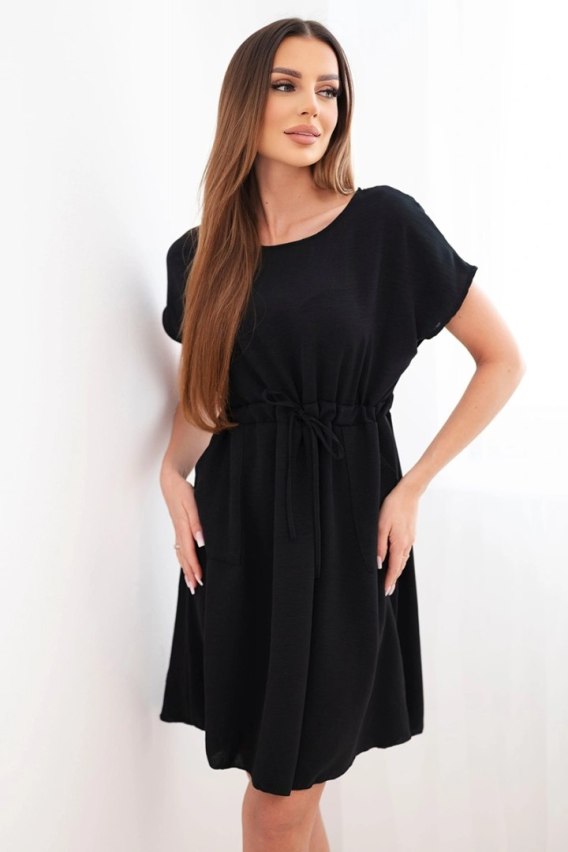 Sukienka damska z krótkim rękawem i wiązaniem w pasie czarna