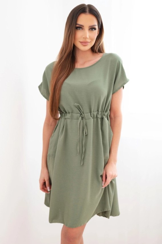 Sukienka damska z krótkim rękawem i wiązaniem w pasie khaki