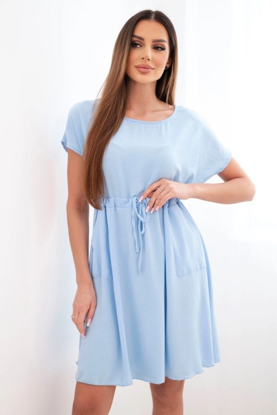 Sukienka damska z krótkim rękawem i wiązaniem w pasie niebieska
