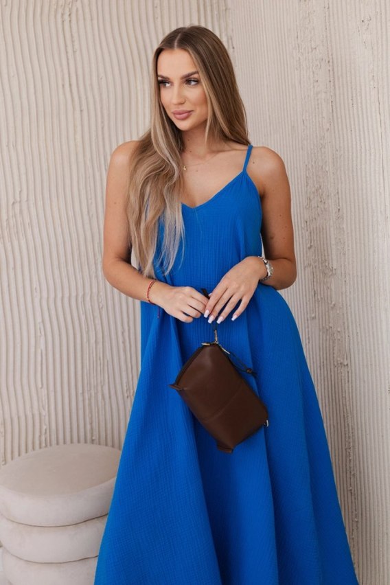 Sukienka muślinowa na ramiączkach chabrowa