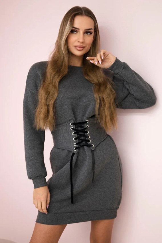 Sukienka ocieplana z ozdobnym pasem grafitowa