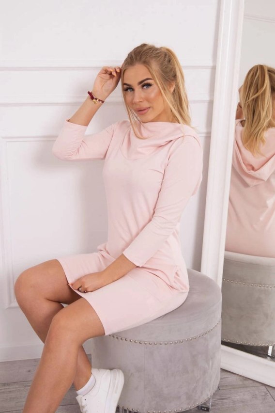 Sukienka z kapturem i kieszeniami pudrowy róż