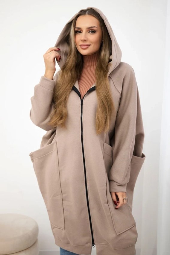 Ciemno-beżowa bluza damska ocieplana o kroju oversize