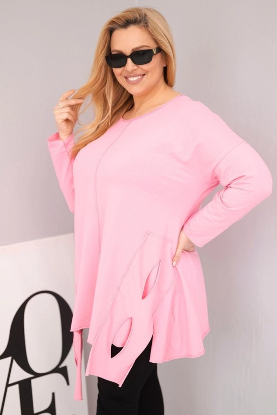 Jasnoróżowa bluzka damska bawełniana Plus Size z asymetrycznym dołem