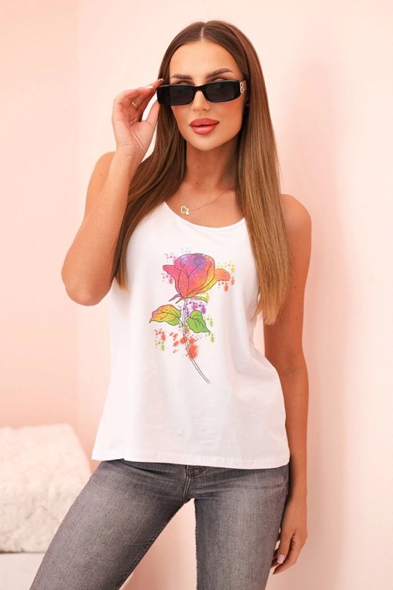 Biała bluzka damska bawełniana na ramiączkach z nadrukiem kwiatowym – urok natury