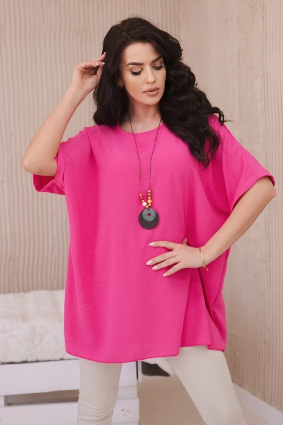 Bluzka oversize z wisiorkiem to połączenie luzu i subtelnej elegancji. Wykonana z wygodnego i miękkiego materiału, ta bluzka zapewnia wyjątkowy komfort noszenia. Jej oversizeowy krój dodaje swobody ruchom, podczas gdy wisiorek umieszczony na dekolcie dodaje jej delikatnego uroku i wyrazistości. Doskonała na codzienne wyjścia czy spotkania ze znajomymi, ta bluzka pozwoli Ci poczuć się wyjątkowo i swobodnie, będąc jednocześnie modnym dodatkiem do Twojej garderoby. Rozmiar jest uniwersalny i będzie odpowiedni dla Pań noszących rozmiar S, M lub L.