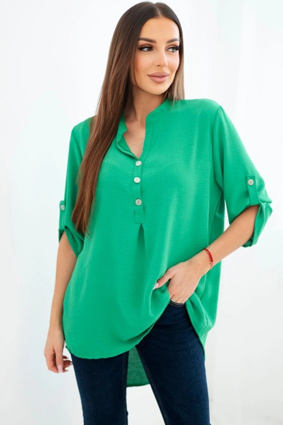 Odkryj niezwykłą elegancję i wygodę w prezentowanej bluzce z dłuższym tyłem, dekoltem na guziki i podwijanymi rękawami, ta bluzka nie tylko prezentuje się wyjątkowo stylowo, ale także zapewnia niezrównaną funkcjonalność. Poczuj się pewnie i elegancko w bluzce, która podkreśli Twój wyjątkowy styl. Dzięki dłuższemu tyłowi stworzysz subtelne i modnie nieregularne proporcje, a dekolt na guziki pozwoli Ci dopasować bluzkę do swoich preferencji. Podwijane rękawy dodają bluzce lekkości i swobodnego charakteru, idealnego na różne okazje. Niezależnie od tego, czy to spotkanie biznesowe czy relaksująca kawa z przyjaciółkami, nasza bluzka zapewni Ci wygodę i styl w jednym. Nie przegap okazji, aby dodać tę wyjątkową bluzkę do swojej garderoby! Odkryj elegancję, wygodę i funkcjonalność w jednym, i podkreśl swój niepowtarzalny styl już dziś. Rozmiar jest uniwersalny i będzie odpowiedni dla Pań noszących rozmiar S, M lub L.