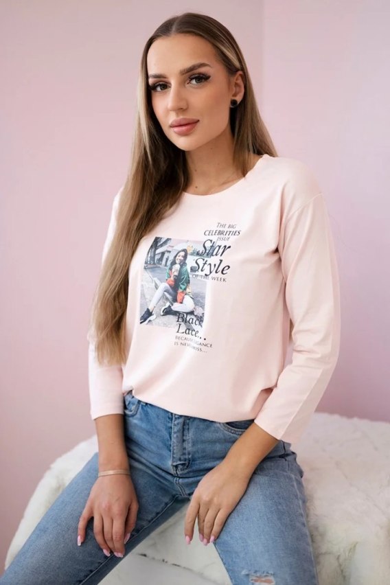 Pudroworóżowa bluzka damska z nadrukiem Star Style – Twój modowy fundament na 2026 rok