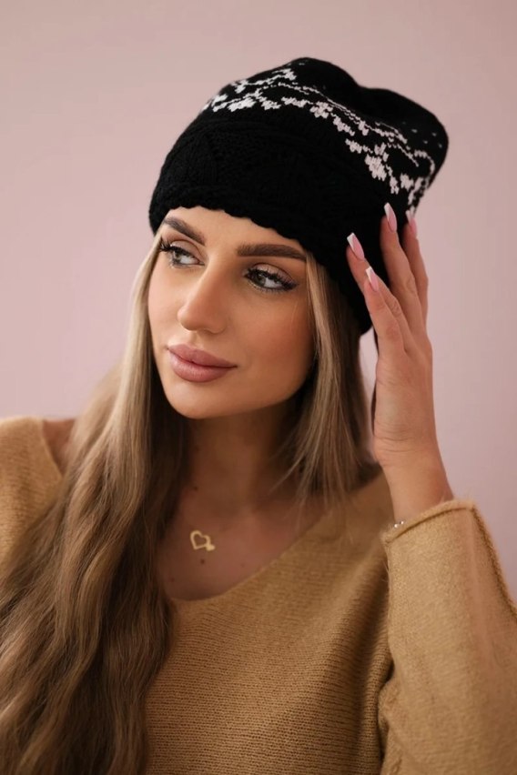 Czapka damska Kira K374 czarny+biały