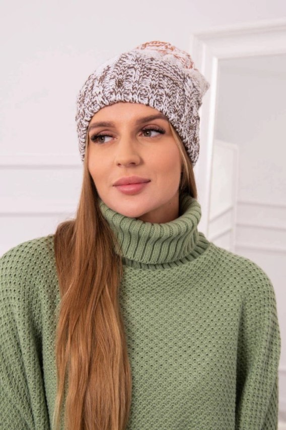 Czapka z polarem Dolores K303 brązowy+biały+rudy