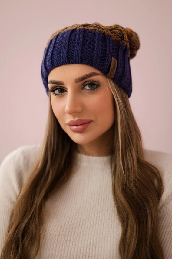 Czapka z polarem Milano K203 musztardowy melanż+ciemny fioletowy