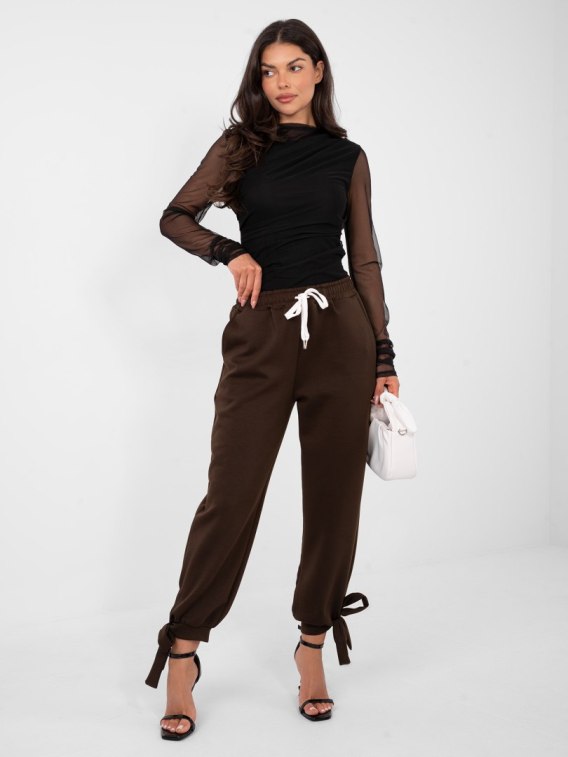 Czekoladowe spodnie dresowe masełko – modny fason z wiązanymi nogawkami