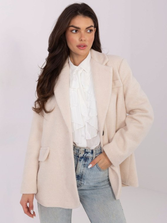Produkt wykonano z wysokiej jakości mieszanki włókien, która imituje strukturę flauszu. Aby płaszcz służył przez lata, zalecamy czyszczenie chemiczne lub delikatne odświeżanie parownicą. Dzięki temu jasnobeżowa tkanina zachowa swoją miękkość, a fason nie ulegnie deformacji podczas długotrwałego użytkowania.