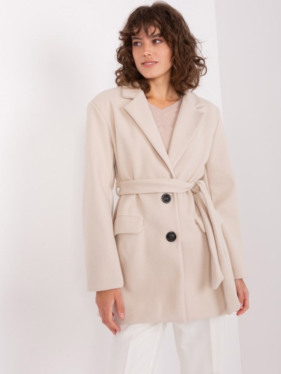 Jasnobeżowy krótki płaszcz damski OCH BELLA – elegancja w minimalistycznym wydaniu