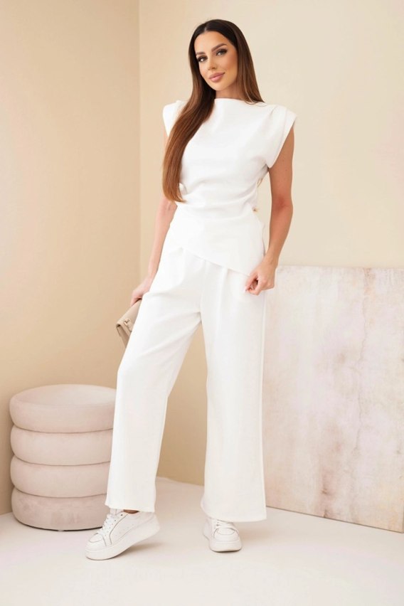 Ten wyjątkowy komplet to idealne połączenie elegancji i komfortu, które podkreśli Twój indywidualny styl. Asymetryczna bluzka zachwyca oryginalnym krojem, nadając stylizacji nowoczesnego charakteru. Jej luźny fason doskonale układa się na sylwetce, maskując ewentualne niedoskonałości i zapewniając swobodę ruchów. Spodnie, idealnie dopasowane do bluzki, posiadają wygodny krój, który gwarantuje komfort noszenia przez cały dzień. Wykonane z wysokiej jakości materiałów, świetnie układają się na ciele i pasują zarówno do codziennych, jak i bardziej eleganckich stylizacji. Komplet asymetryczna bluzka + spodnie to doskonały wybór dla kobiet, które cenią sobie niebanalne fasony i chcą wyglądać stylowo w każdej sytuacji. Idealny zarówno do pracy, na spotkania, jak i na wyjątkowe okazje - stwórz niepowtarzalny look, który wyróżni Cię z tłumu. Rozmiar jest uniwersalny i pasuje dla kobiet noszących rozmiar S, M lub L.