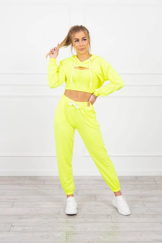 Żółty neonowy komplet 3-częściowy – bawełniany zestaw z topem, bluzą i legginsami