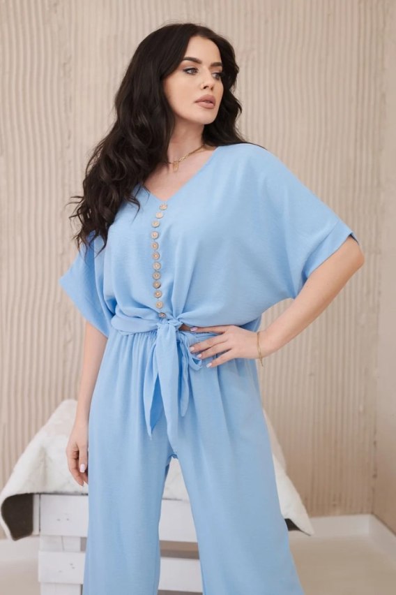 Komplet włoski z bluzką wiązaną z przodu i spodniami z szeroką nogawką to idealny wybór dla kobiet, które cenią sobie wygodę i styl w jednym. Bluzka zawiązywana z przodu na guziki, dodaje subtelnej kobiecości. Spodnie z szeroką nogawką, wykonane z przyjemnego w dotyku materiału, zapewniają swobodę ruchów i wygodę podczas noszenia. Taki kompletny zestaw można nosić na różne okazje - zarówno do pracy, jak i na randki czy spotkania ze znajomymi. Połączony z eleganckimi butami i dodatkami, takimi jak torebka czy biżuteria, stworzy stylową i modną stylizację. Rozmiar jest uniwersalny i będzie odpowiedni dla Pań w rozmiarze S, M lub L.