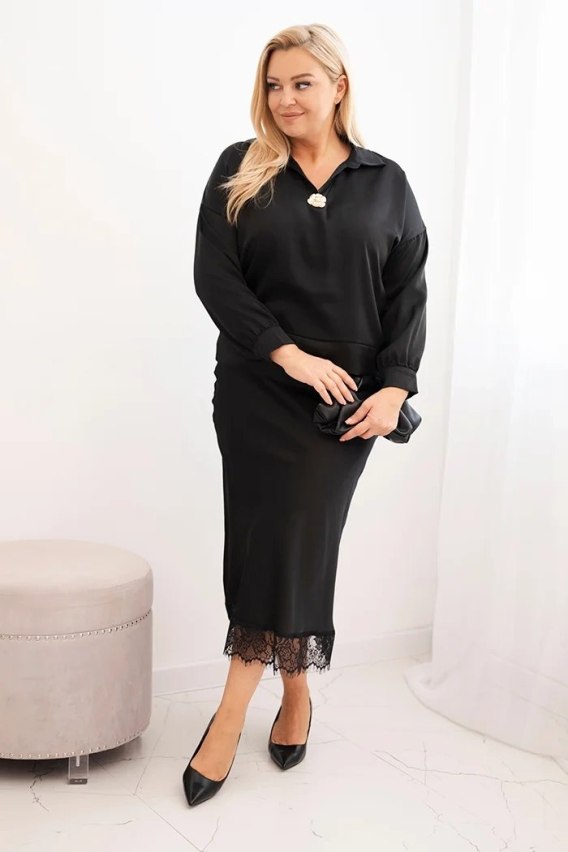 Komplet damska Plus Size z satynowym połyskiem i koronką czarny