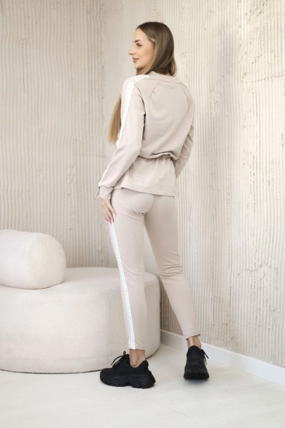 Komplet damski bawełniany z lampasem i ściągaczami beżowy