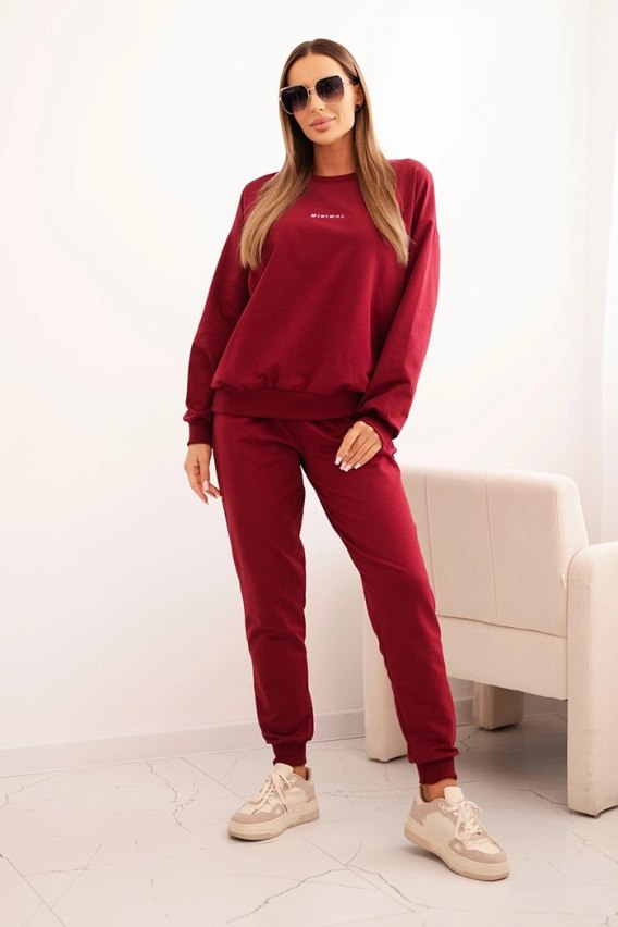 Komplet damski bawełniany z nadrukiem Minimal bordowy