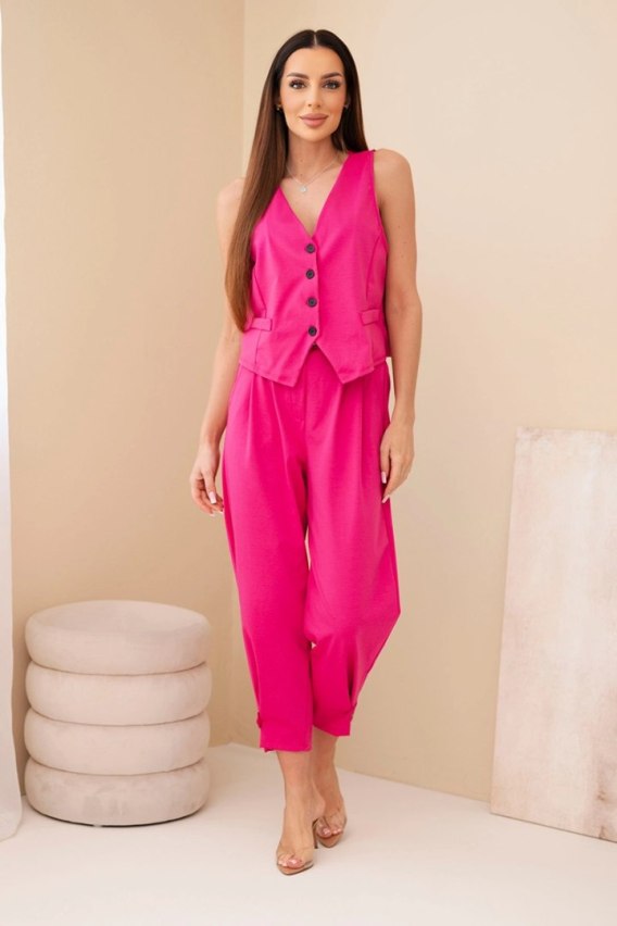Elegancki komplet damski z kamizelką i spodniami – energetyczna fuksja w stylu glamour