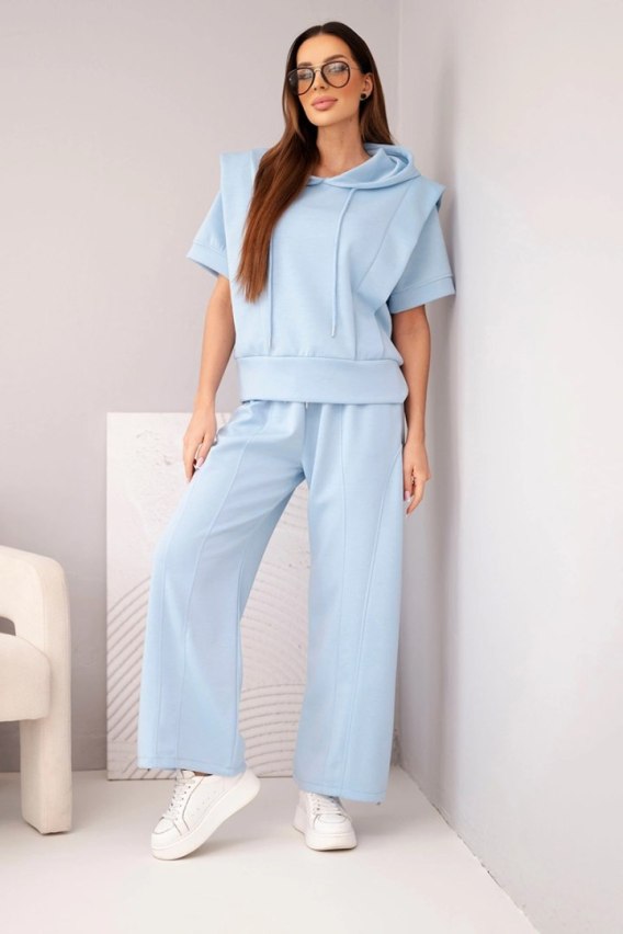 Komplet damski masełkowy bluza z kapturem i luźne spodnie z wiązaniem niebieski