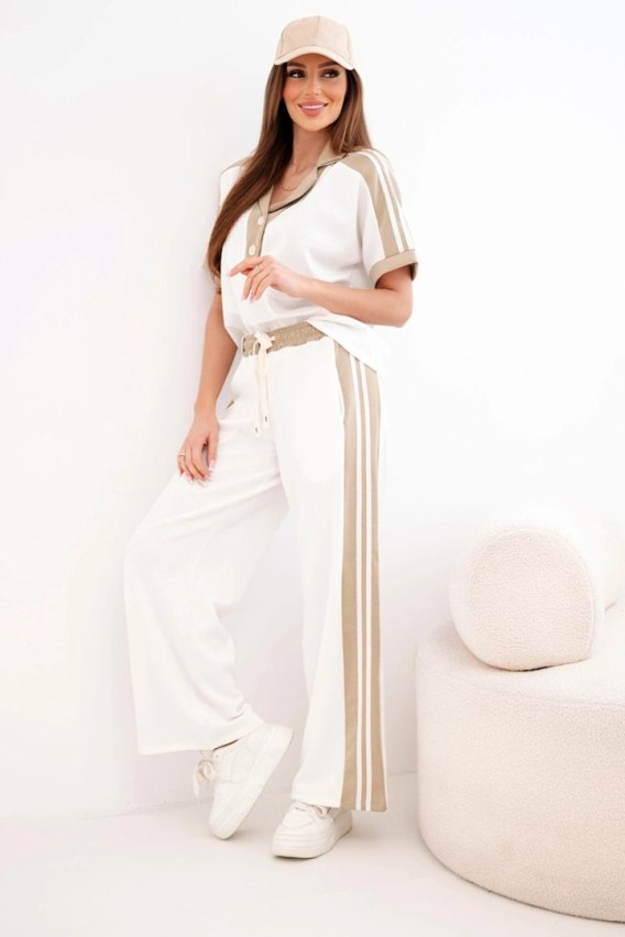 Camelowy komplet damski masełkowy – bluza polo i spodnie z szeroką nogawką