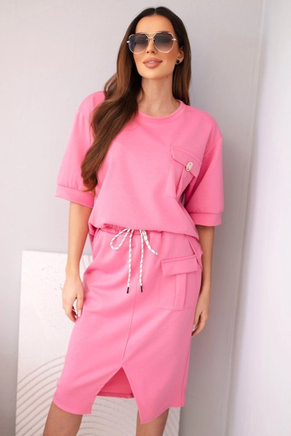 Różowy komplet damski masełko ze spódnicą midi – luksusowy komfort soft-touch