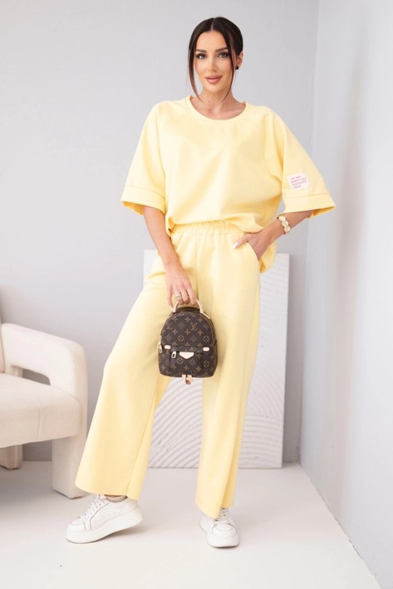 Miodowy komplet damski wiskozowy masełko – luksusowy loungewear z szeroką nogawką
