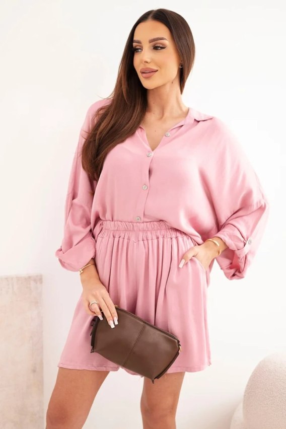 Komplet damski wiskozowy koszula z guzikami i luźne spodenki ciemno różowy