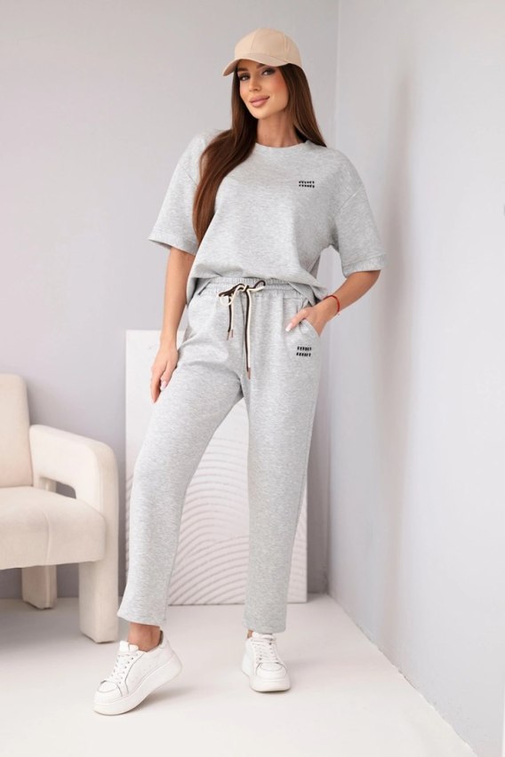 Komplet damski wiskozowy masełko z krótkim rękawem i spodniami z podwijaną nogawką szary