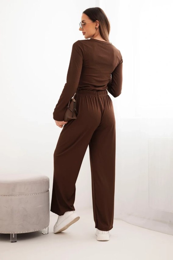 Komplet damski wiskozowy z bluzką i szerokimi spodniami brązowy