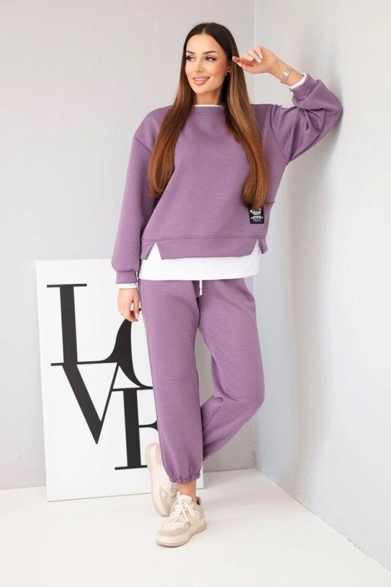 Fioletowy komplet dresowy damski z gładkiej dzianiny masełko – luksusowa wygoda w każdym ruchu