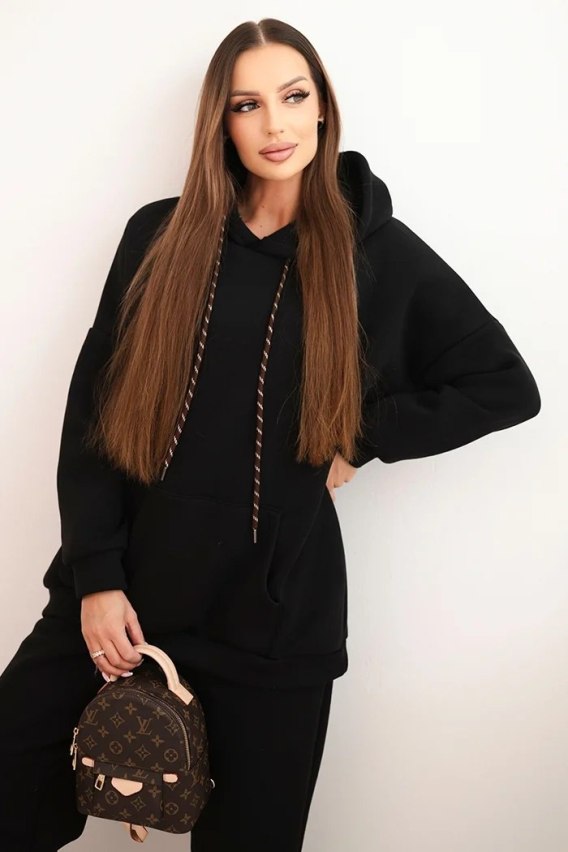 Komplet dresowy damski ocieplany z bawełny i z kapturem czarny