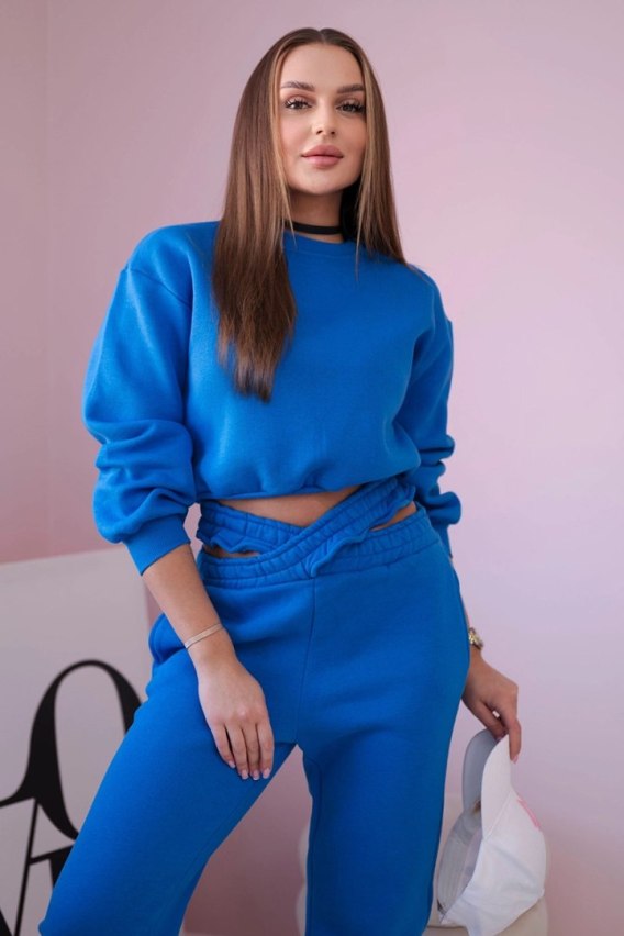Komplet ocieplany z krótką bluzą chabrowy