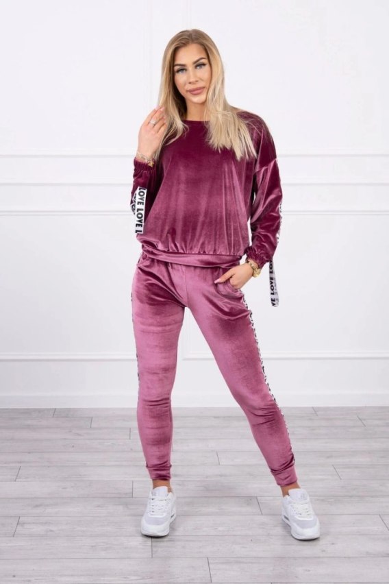 Komplet welurowy Love ciemno różowy