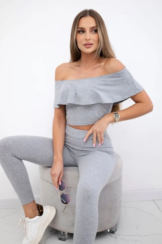 Komplet z falbanką szary