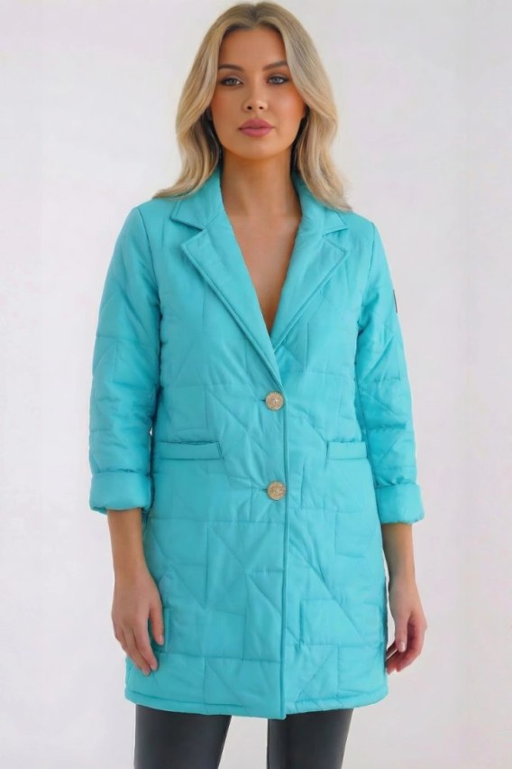 Kurtka damska Plus Size pikowana z ozdobnymi guzikami i kołnierzem jasno miętowa