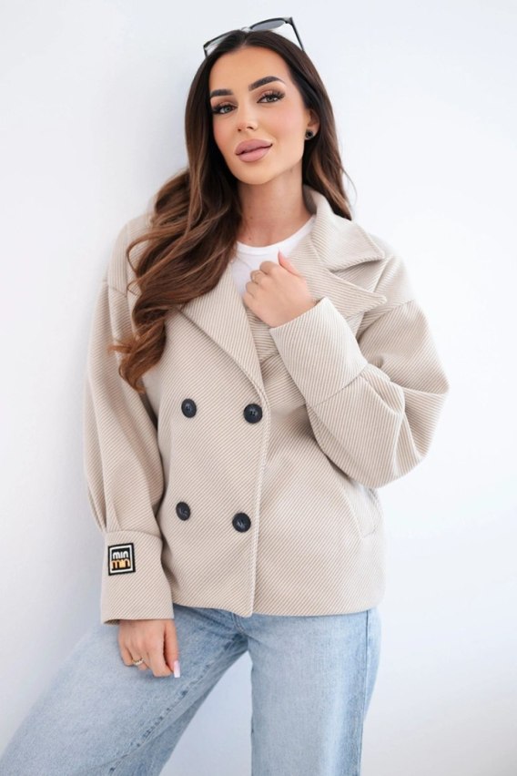 Beżowa krótka kurtka dwurzędowa z kołnierzem – ponadczasowy szyk w Mika Butik