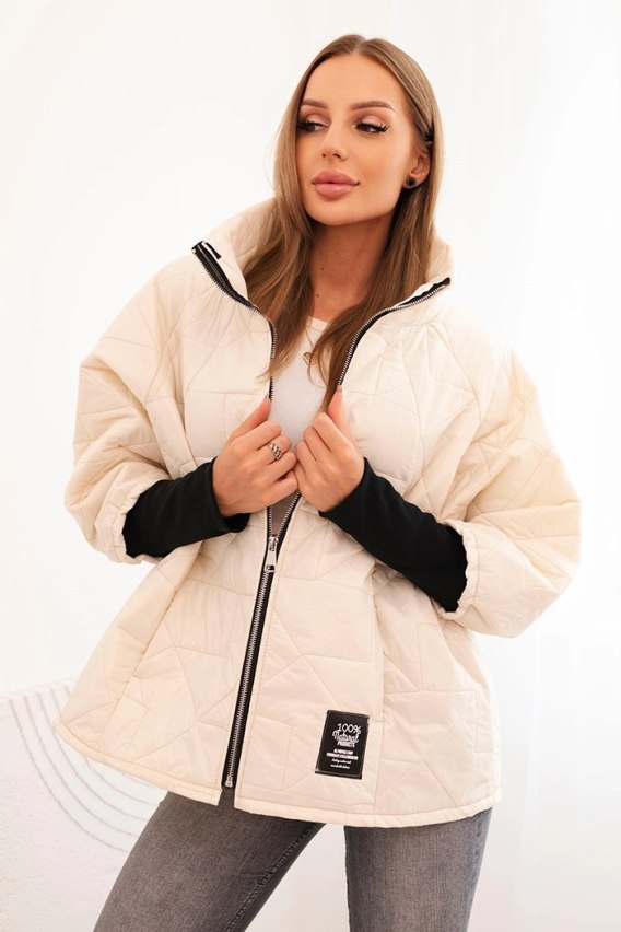 Kurtka damska pikowana z krótkim krojem i stójką jasno beżowa