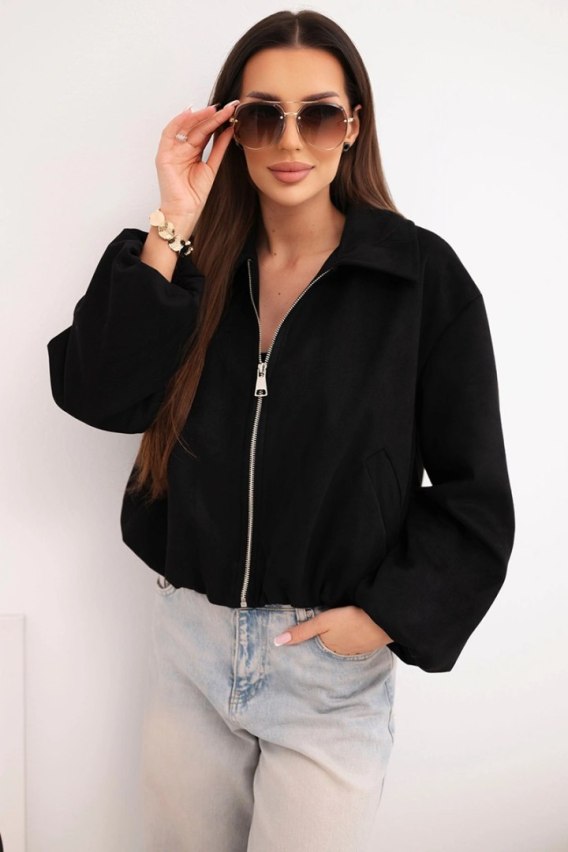 Czarna kurtka damska o nowoczesnym kroju z efektownymi bufiastymi rękawami