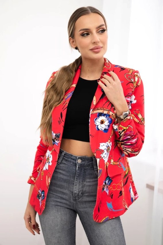 Marynarka bawełniana z kolorowym nadrukiem malinowa