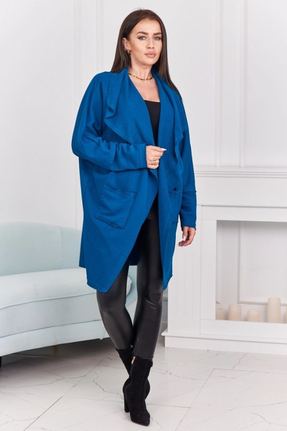 W odróżnieniu od ciężkich kardiganów o grubym splocie, naszalekka narzutka morskacharakteryzuje się gładką strukturą i nowoczesnym, dresowym wykończeniem. Fason typu "open front" (bez zapięcia) miękko otula sylwetkę, a obecność dużych, funkcjonalnych kieszeni sprawia, że jest to produkt niezwykle praktyczny. Naturalny materiał pozwala skórze oddychać, co czyni tę narzutkę idealnym wyborem na każdą porę roku – od wiosennych spacerów po chłodne zimowe wieczory.