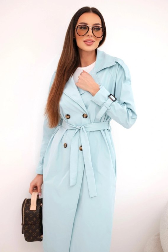 Płaszcz damski wiązany w talii z kołnierzem miętowy