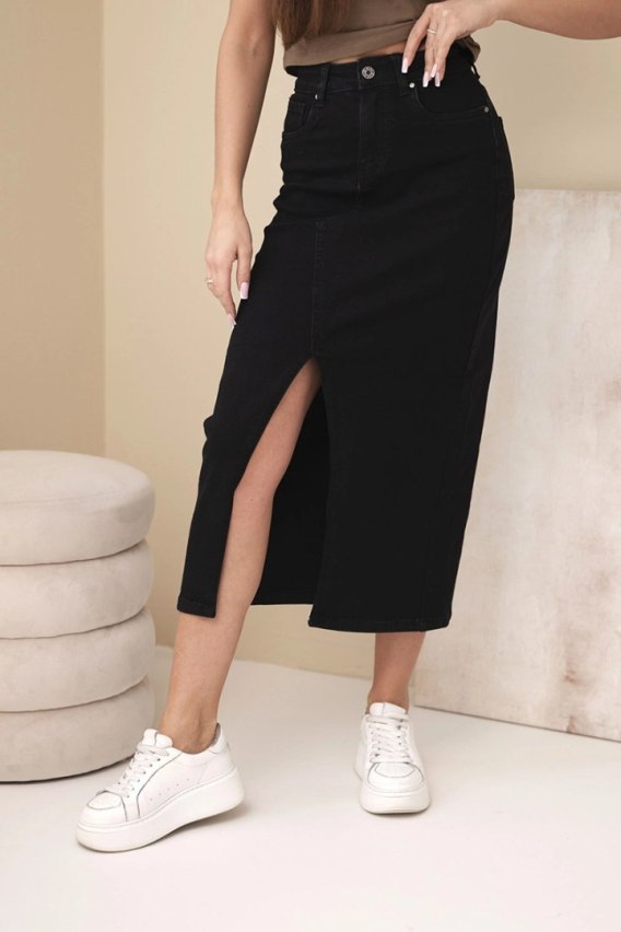 Klasyczna spódnica jeansowa midi z wysokim stanem i modelującym krojem